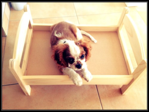 Milka wanted to test ... to see that it was solid ...She did not even want to wait until we finished the bed ... She has already taken possession![/caption]