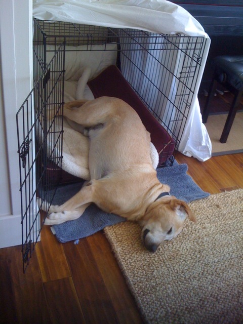 SD: SlimDoggy grew out of our experience with Jack, a yellow Labrador that we rescued in August 2011. He weighed 105 lbs. (48 kgs.) and was on both Prozac and Rimadyl (for anxiety and orthopedic issues from the extra weight). We knew we could help with diet and exercise. With guidance from our orthopedic vet and lots of research to figure out portion sizes and calorie targets, we put him on a diet and exercise program immediately and within 3 months, Jack was down to 85lbs (39 kgs.), off of both medications, and a happy and healthy dog.